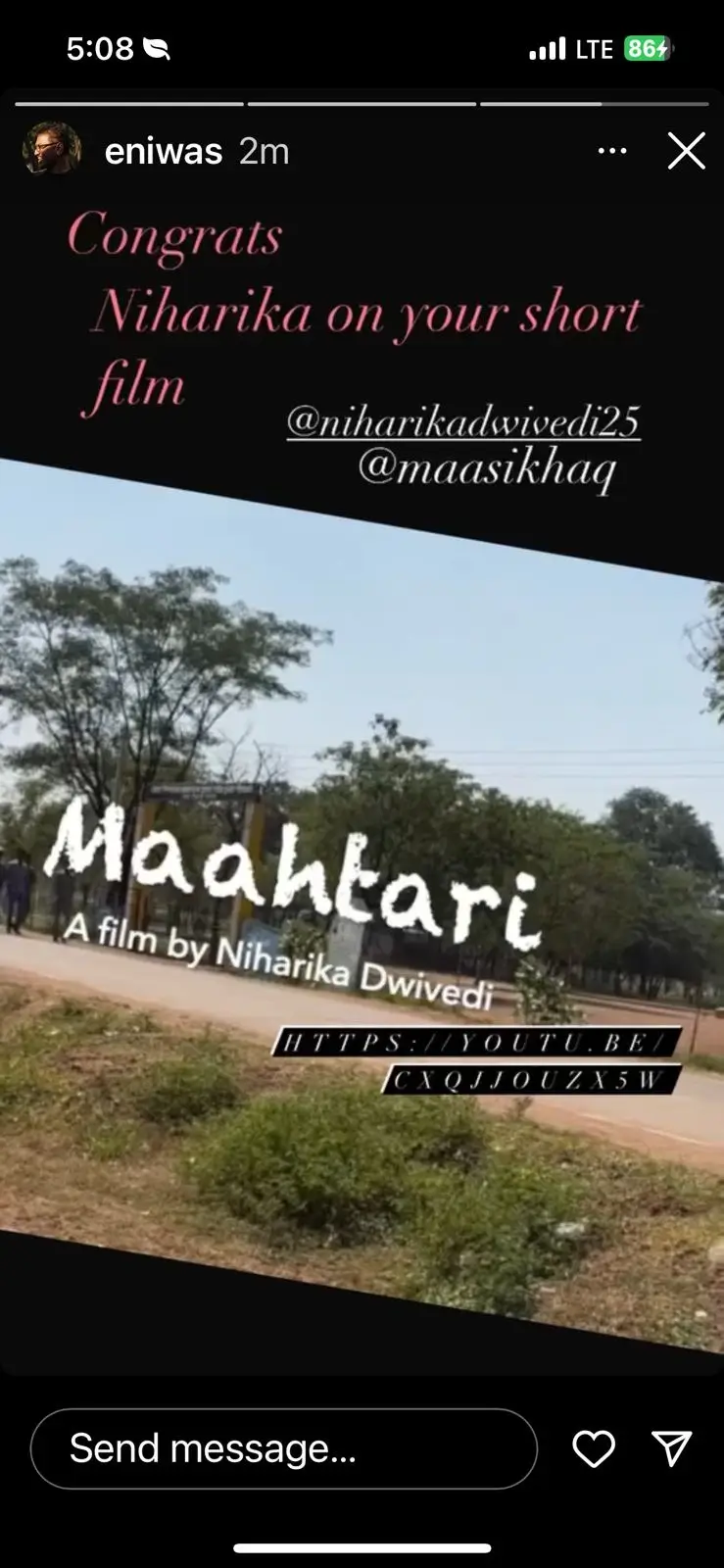 Having Maahtari screened at the Alibaug Film Festival and ultimately resulting as a finalist in the Short Documentary category was truly an incredible experience. The most fulfilling part of this project was knowing that Maahtari served as a platform itself for tribal women to express their experiences with dignity and agency. Niharika wanted the film to go beyond raising awareness —it was about creating a bridge between communities and advocating for change. This experience gave the documentary a wider audience, further amplifying these voices. It reaffirmed Niharika’s belief that the media can serve as a powerful tool for education and social justice, aligning perfectly with my long-term goals of supporting underrepresented communities.