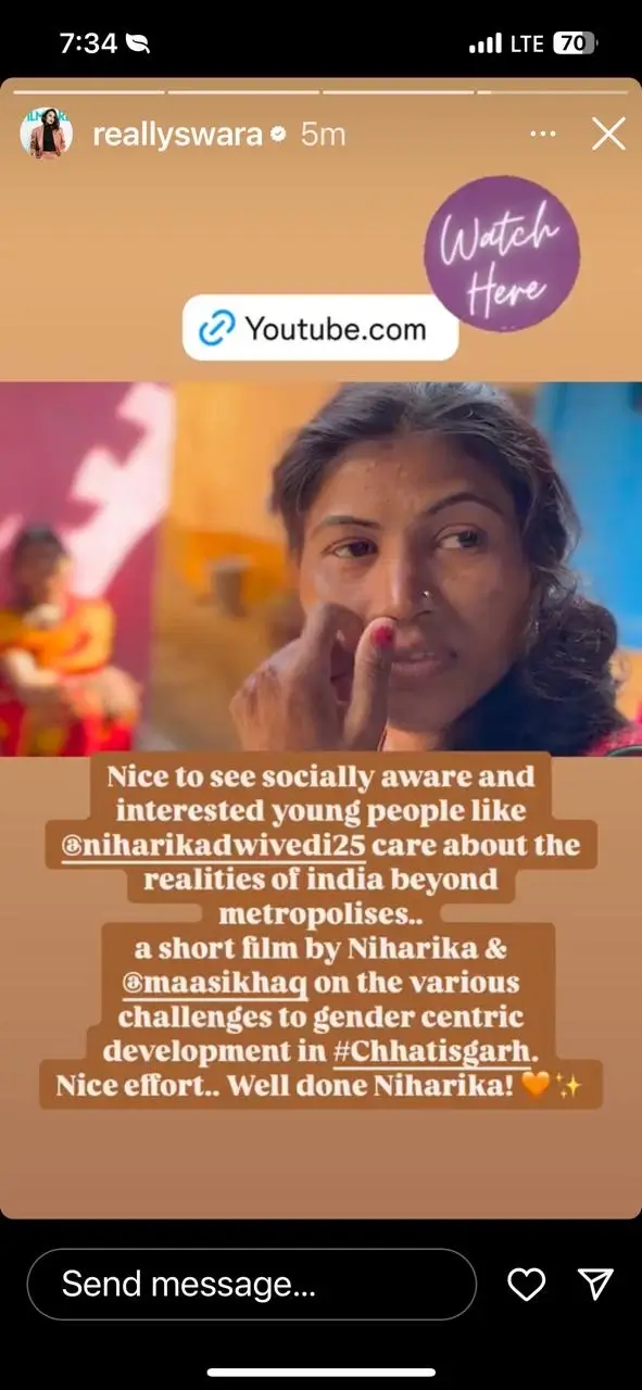 Niharika believes that while it is salient to educate tribal women about menstruation, it is also significant for urban audiences to know about the lives of tribal women. Directing and editing Maahtari (mother in Chhattisgarhi, a local dialect) involved her in conducting recces in towns like Rudri and Dhamtari, understanding visual and cinematic techniques, interacting with the gram panchayats (village heads), contacting the administration of the state, listening to stories of various tribal women, and understanding with compassion to their challenges and obstacles. Gaining immense appreciation for the same, the documentary was screened at Pathways School Noida and was viewed by 500+ students and later the FICCI Film Festival in 2023, viewed by more than 1000+ of an audience. Maahtari was a means to bridge the gap between the urban and the rural.